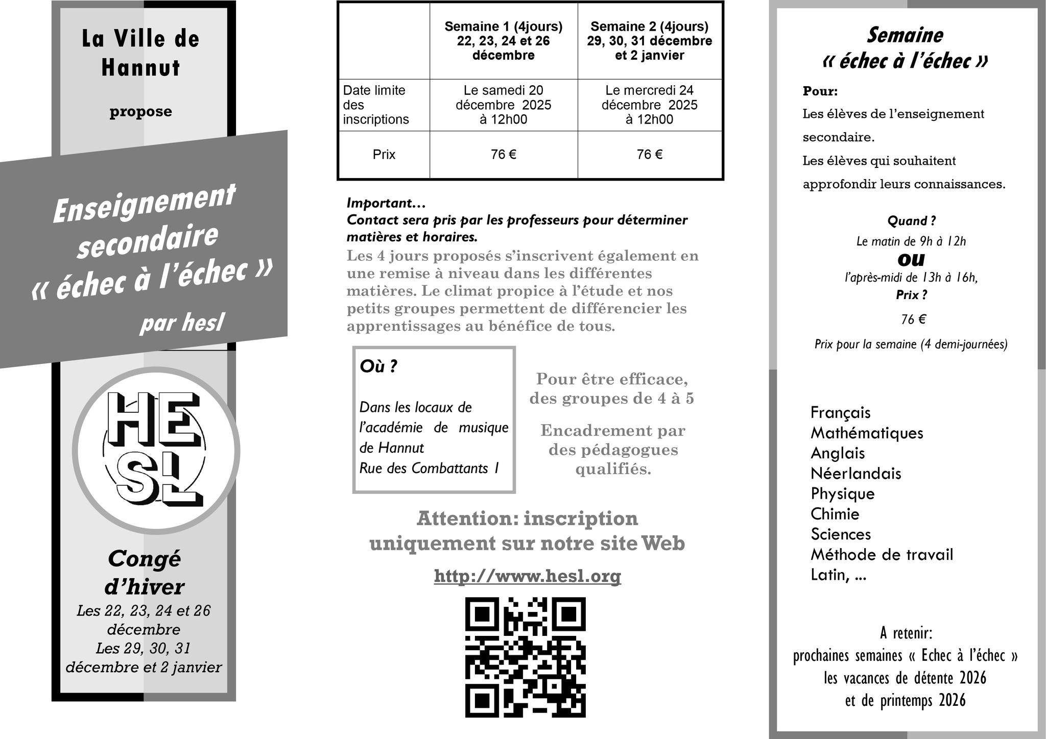 Dès ce mercredi 12 novembre 2025, de 12 h 30 à 14 h 30, ils pourront suivre l’un des cours suivants : néerlandais, anglais, mathématiques (D.I.uniquement) et français.